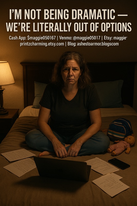 Okay, let’s just call it: I’m spiraling. And not in a cute “oops I overthought a text message” kind of way. I mean full-on, chest-tight, ugly-cry panic mode. Because somehow I’m the only one in this motel room who realizes that we are one checkout away from the street.